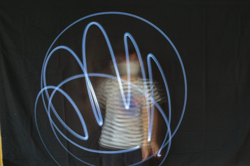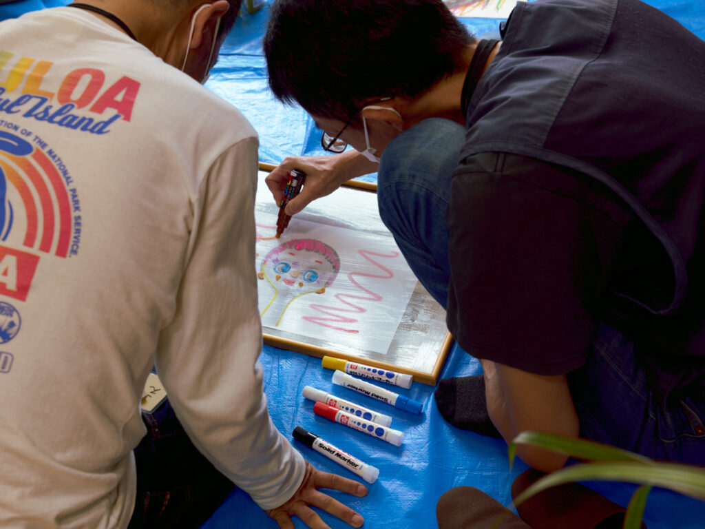 廣瀬剛先生のライトとカメラを使ったアートや、エレ雅商店先生の透明パネルを使った”ポータブル顔はめパネル”のほか、古い額、巻物状にした画用紙、コラージュなどもご用意。